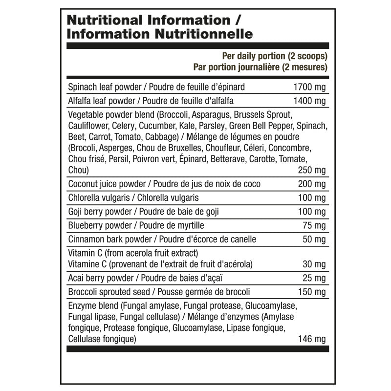 Depending on your current vegetable and fruit intake, and if you are new to green drinks, consider starting with 1 scoop and increasing to 2 scoops over a few days with 240 ml of water.