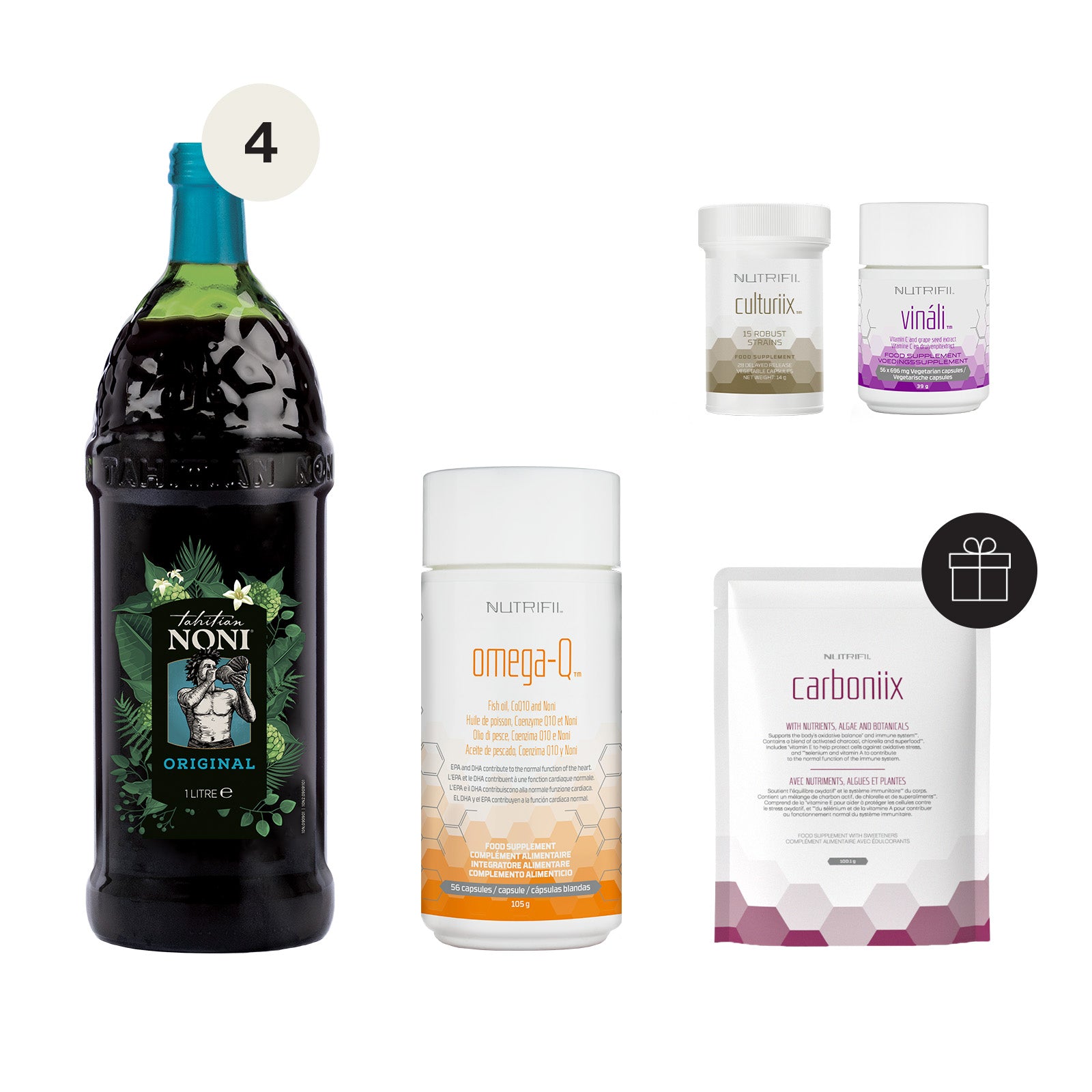 Tahitian Noni® Original x4 1L Bottles pack, Omega-Q, Culturiix, Vináli and a FREE Carboniix.